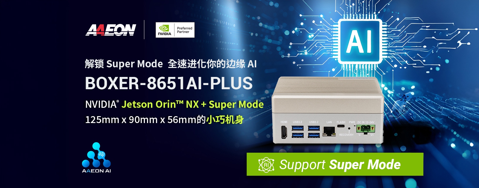 【台北讯】专业物联网及人工智能边缘运算平台研发制造大厂——研扬科技(股票代码:6579),日前推出最新无风扇嵌入式 AI 系统 BOXER-8651AI-PLUS。该新品搭载 8GB 或 16GB 的 NVIDIA® Jetson Orin™ NX 模块(支持 Super Mode),具备高达 157 TOPS 的 AI 运算效能,并提供 NVIDIA Jetpack™ 6.2 支持,大幅提升 Jetson Orin 模块的生成式 AI 性能。