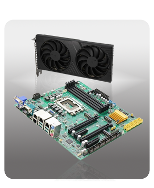 Micro-ATX board with our new advanced graphics card featuring Intel® Arc™ A750E GPU architecture for 229 TOPs of AI inferencing power