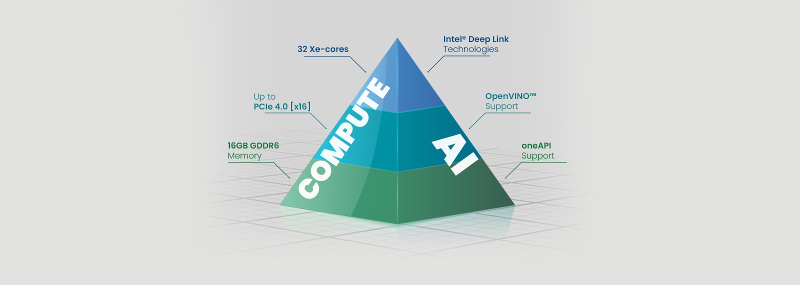 The GAR-A750E comes equipped with 448 Intel® XMX Engines, Xe Vector Engines, and grants access to a plethora of developer tools with which to enhance applications, including DirectX 12 Ultimate, Vulkan 1.3, and OpenGL 4.6.
